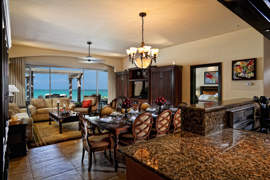 The 103-suite property is nestled in a private enclave between the Riviera Maya and Cancun. The suites are designed as private residences with kitchen facilities. Other amenities include a spa, a fitness center, personalized beach and pool service, tennis, bike rentals, watersports, an Activity Center, kids club, teen hang out as well as a selection of classes on Mexican cooking, tequila and wine tasting, Mayan studies, Spanish, nature programs and community volunteering. Accommodations range from studios to the property’s top-notch Presidential Suite, a four-bedroom penthouse that sleeps up to 13. It comes complete with a private roof garden, ocean views, a pool, Jacuzzi and a bar and grill for entertaining.